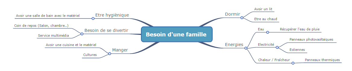 Tous les besoins d'une famille de 5 personnes ont été définis ci-dessous, grâce à l'outil FramindMap